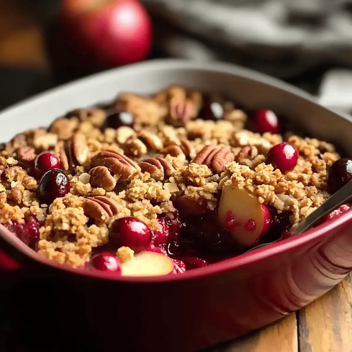 The scent of cinnamon swirls through the kitchen, drawing everyone in like a warm hug on a crisp fall day. That’s when I know it’s time to whip up my Spiced Cranberry Apple Crumble With Pecan Topping, a dish that never fails to impress. This delightful dessert combines the tartness of cranberries and the sweetness of apples, all topped with a crunchy pecan layer that adds just the right amount of indulgence. Best of all? It takes a mere 15 minutes to prepare, making it perfect for last-minute gatherings or cozy family nights. Plus, it’s easy to customize—swap in tart cherries or even pomegranates to elevate the flavors! Ready to create an aromatic masterpiece that will become a staple in your home? Let’s dive into this comforting recipe!