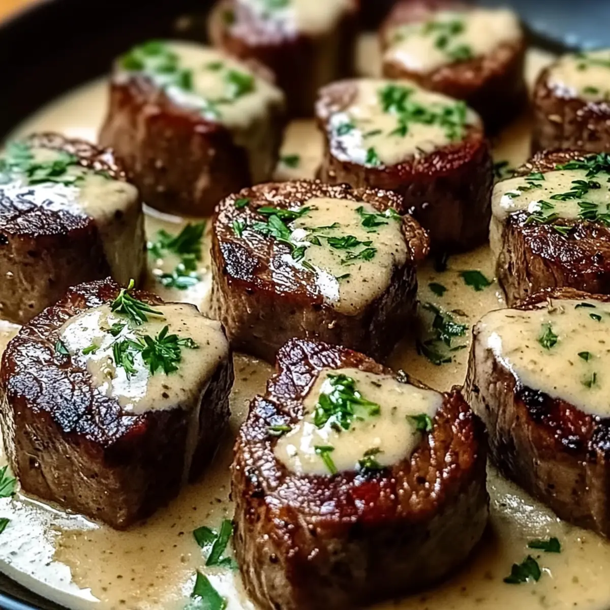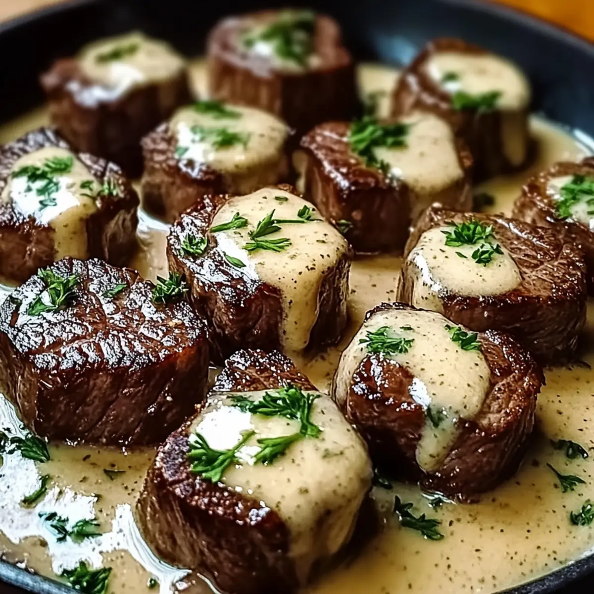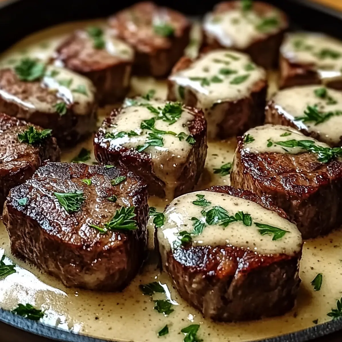 Delicious Steak Bites in Garlic Butter with Creamy Parmesan Sauce
