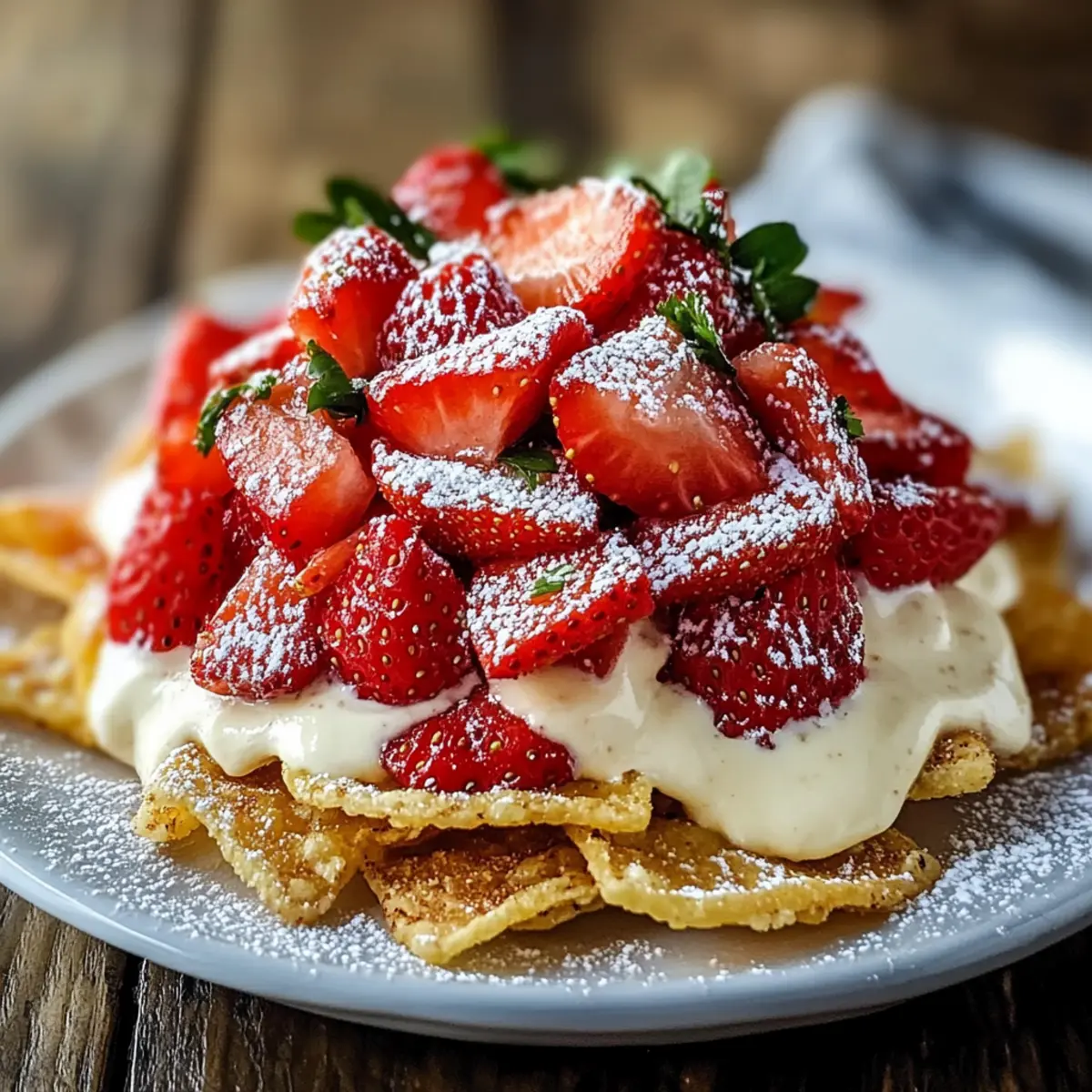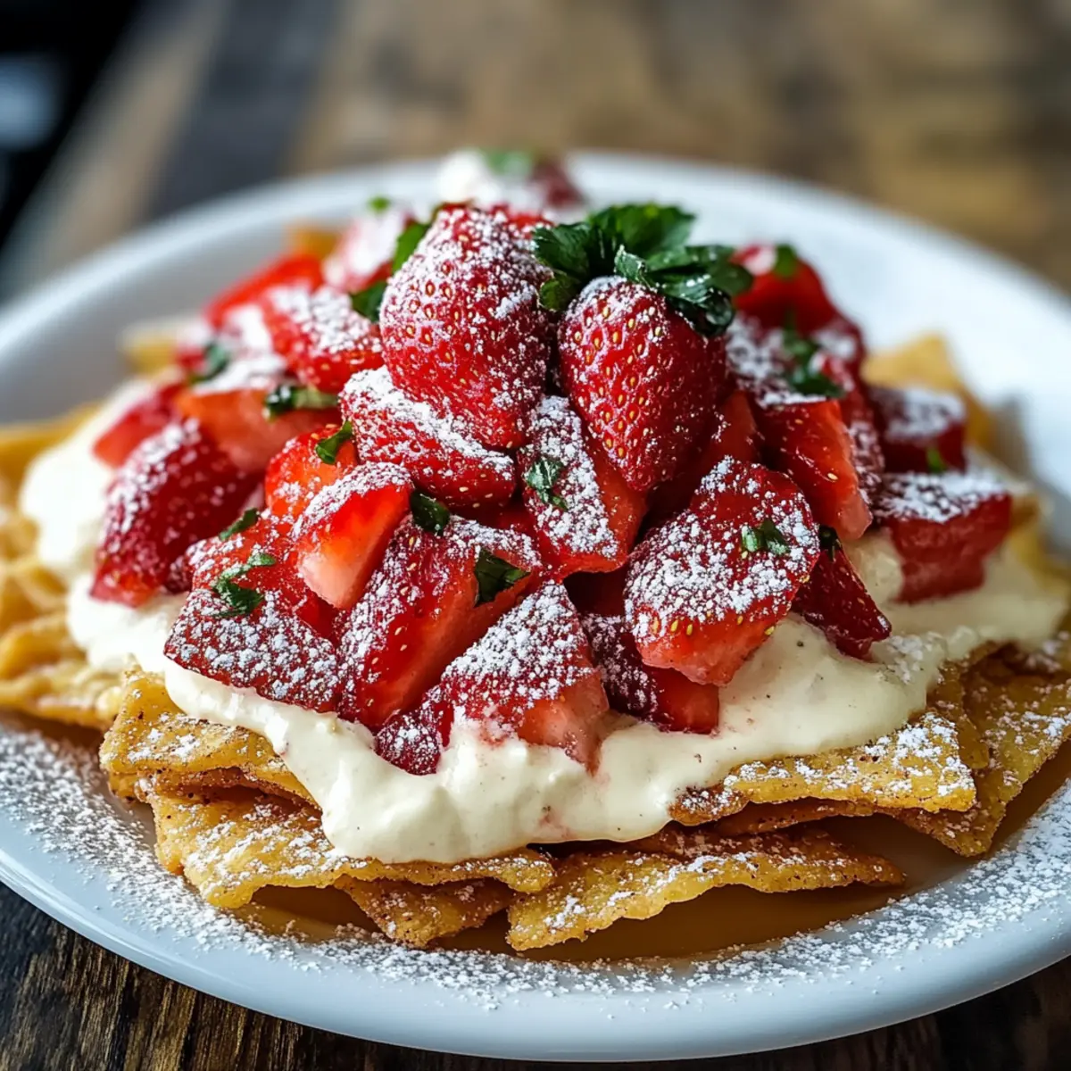 Finish your creation with a light dusting of powdered sugar for a beautiful presentation. For an extra touch, consider adding fresh mint leaves or finely chopped pistachios as a garnish. Serve your delightful Strawberry Cheesecake Nachos immediately, allowing everyone to indulge in this irresistible dessert!