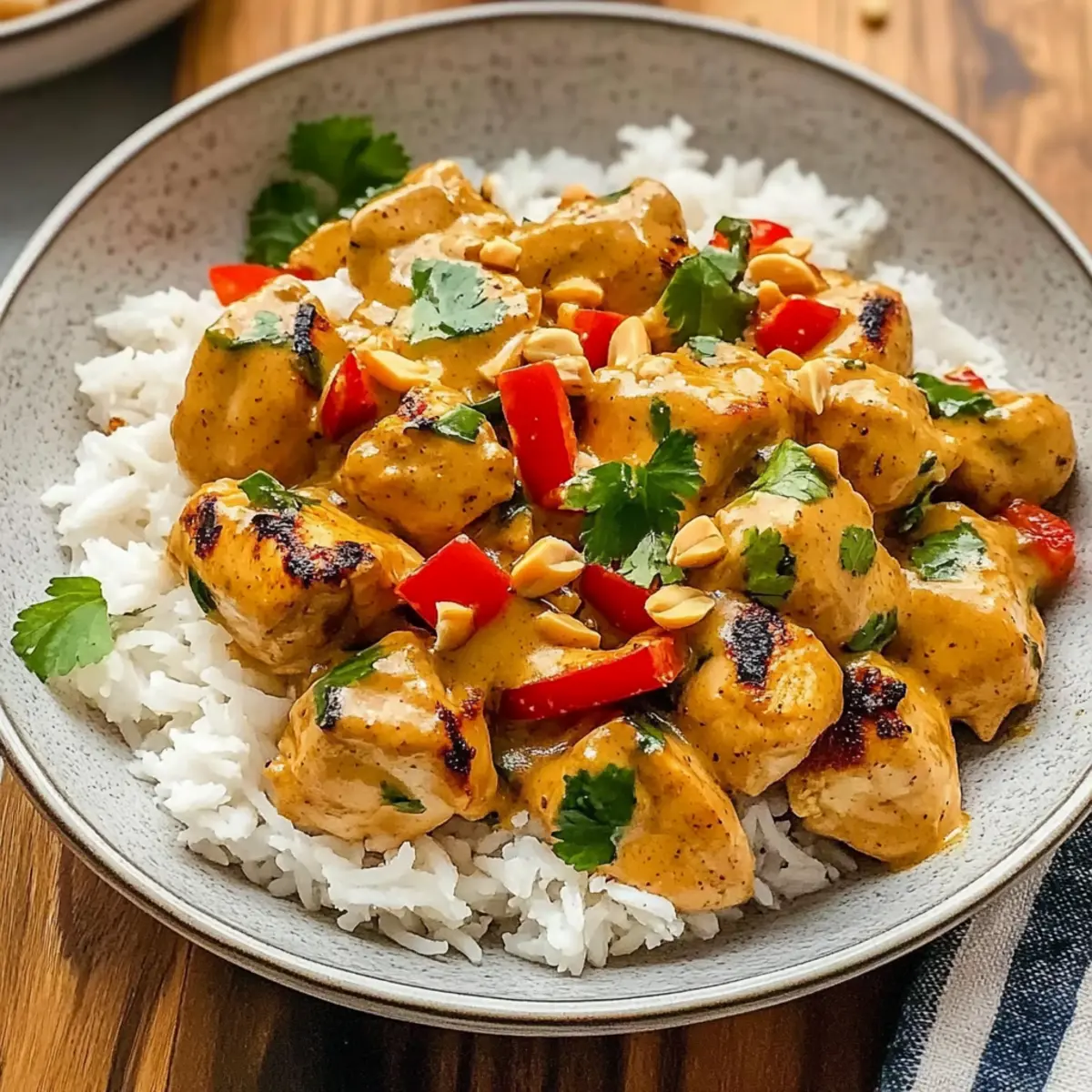 Vegetarian Delight: Use firm tofu or tempeh instead of chicken for a hearty plant-based meal that doesn’t skimp on flavor. The creamy peanut sauce pairs beautifully with these alternatives.