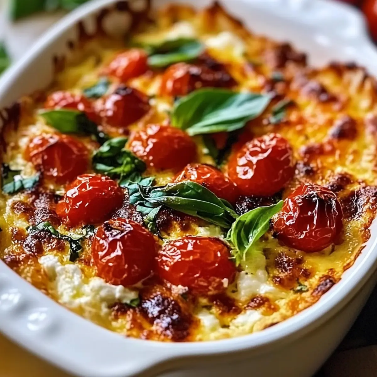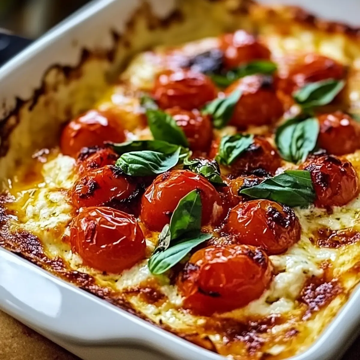 Once your cheese mixture is ready, spread it evenly into your prepared shallow baking dish. This layer will serve as the inviting foundation for the roasted tomatoes, ensuring every bite is packed with that creamy goodness. Make sure to smooth the surface for an even top.