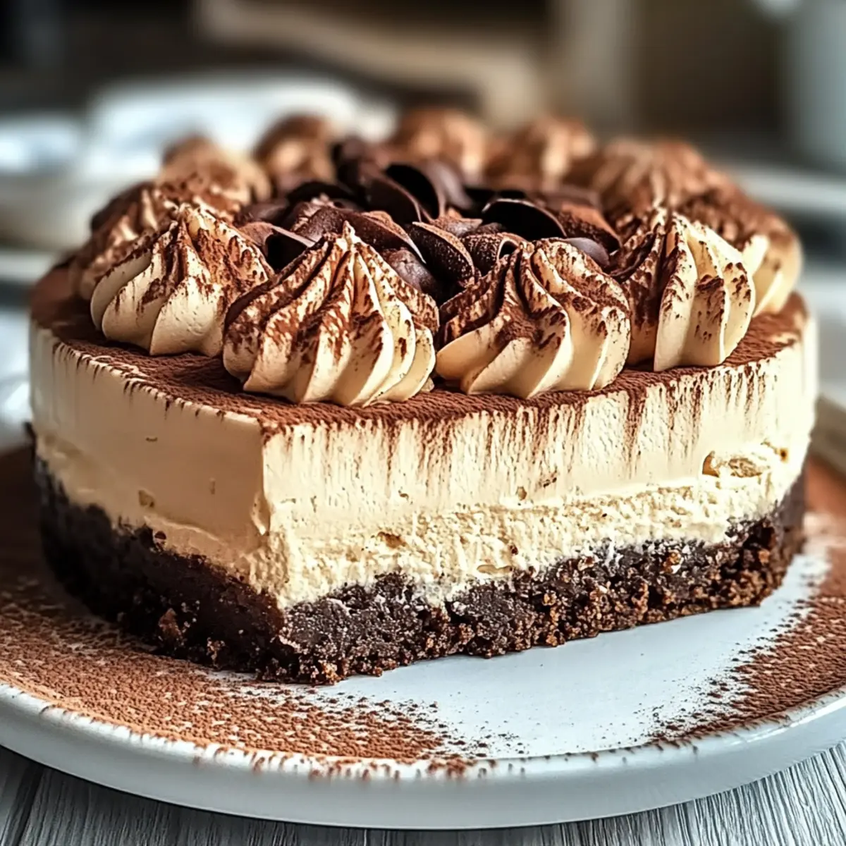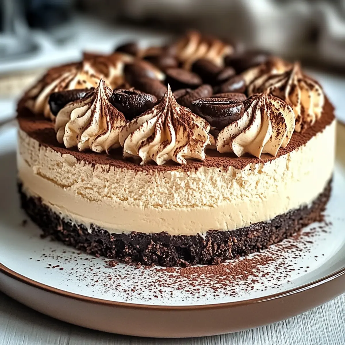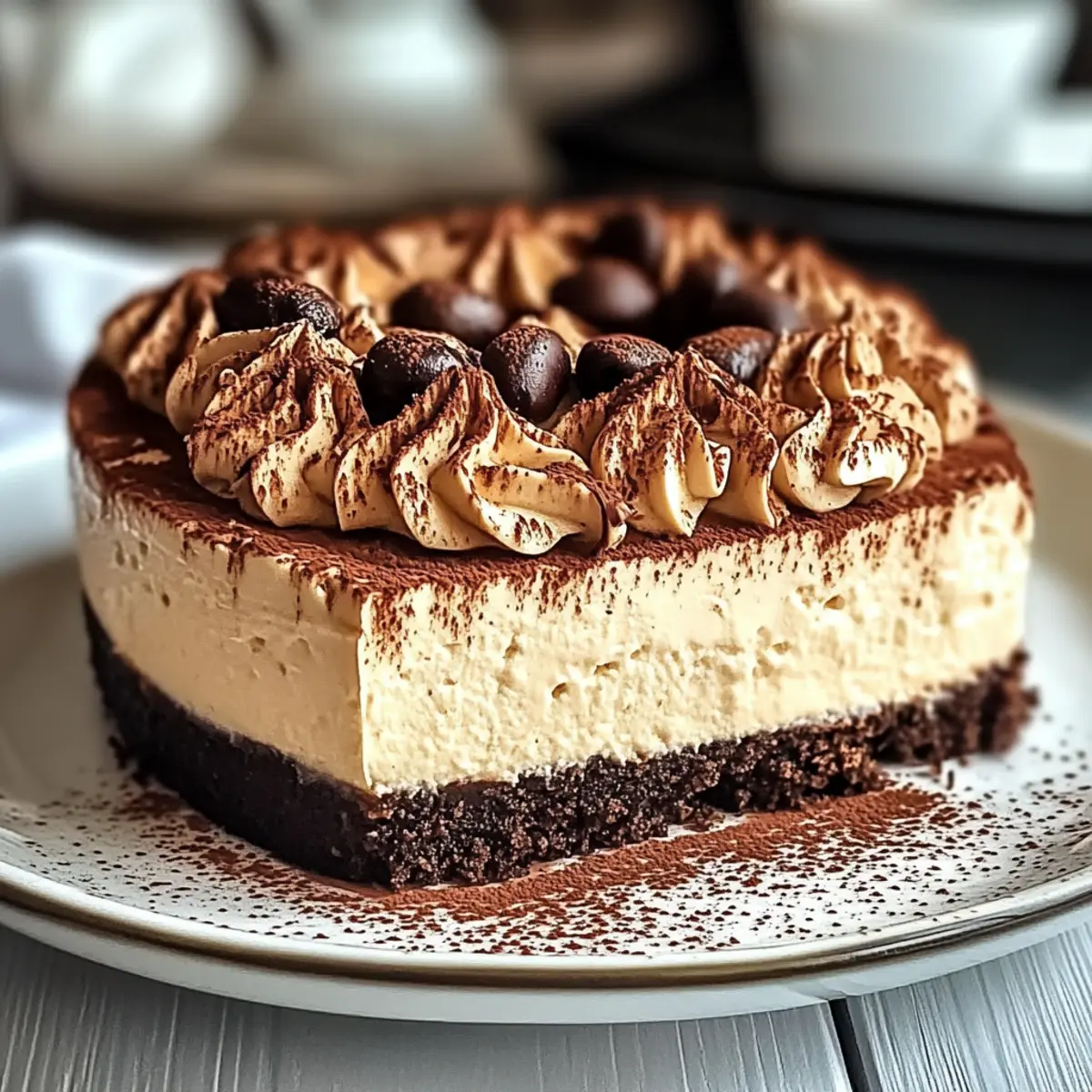 Irresistible fusion: This Tiramisu Cheesecake combines two beloved desserts into one unforgettable experience.