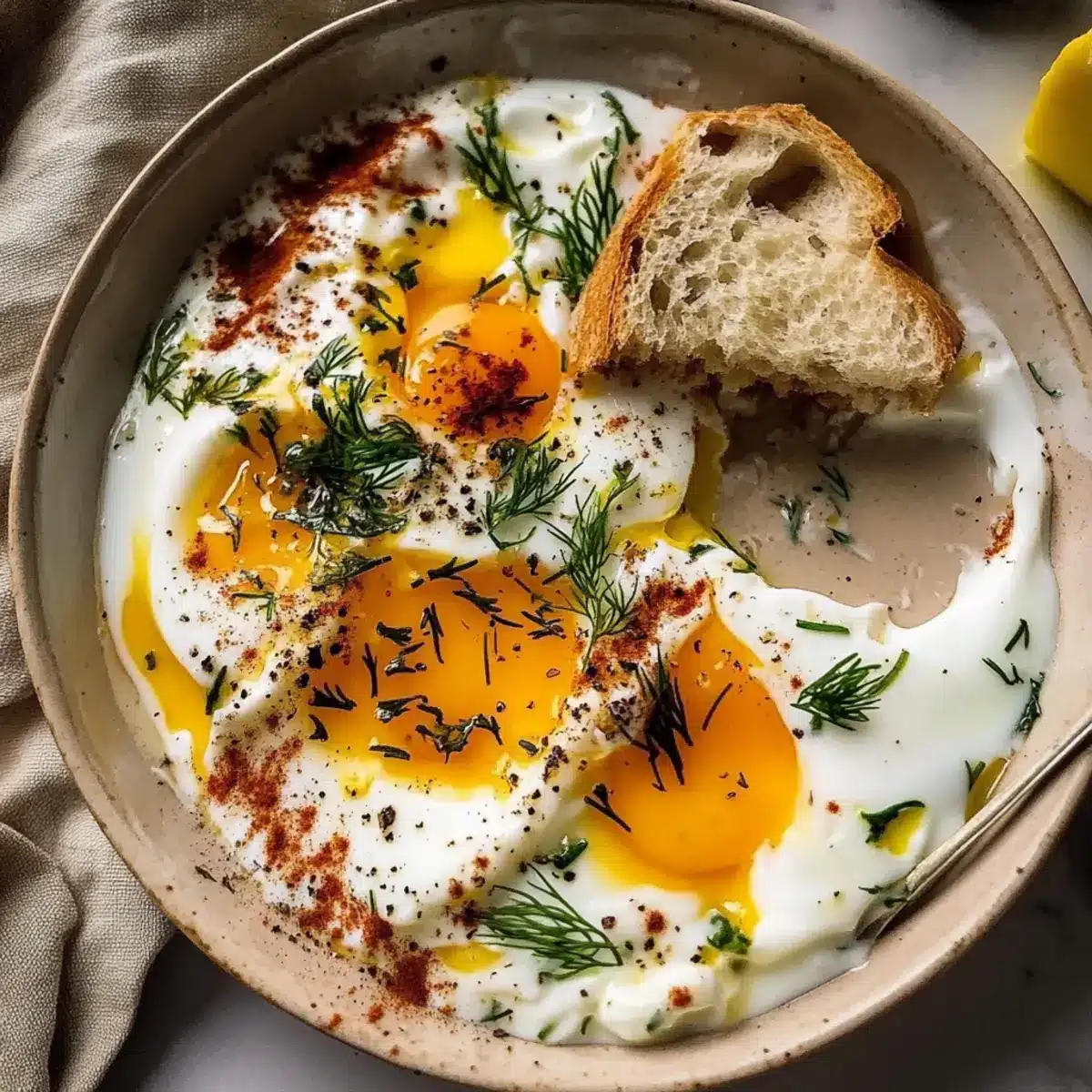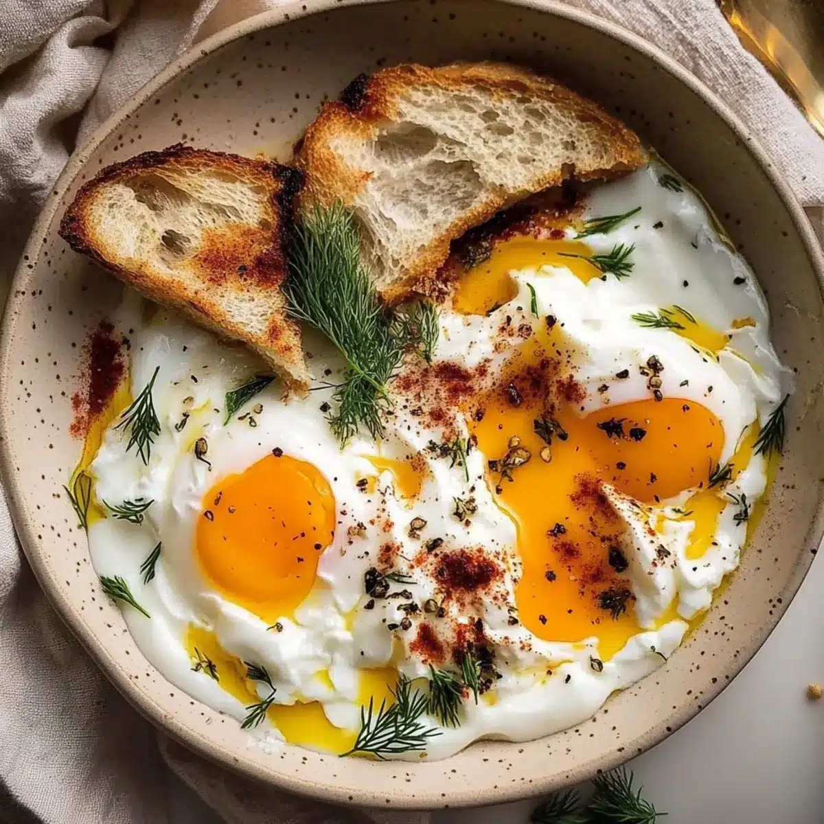 - Crusty Bread: A warm, rustic baguette or sourdough is perfect for scooping up the creamy yogurt and runny eggs.